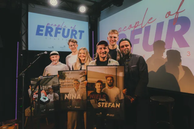 Bevor unsere Portraitvideos online gehen, feiern wir sie gemeinsam – bei einer besonderen Premiere. Dieser Abend ist der erste Moment, in dem die neuen Folgen von People of Erfurt gezeigt werden. Die Location wechselt mit jeder Staffel, denn auch hier wollen wir die kulturelle Vielfalt unserer Stadt sichtbar machen.